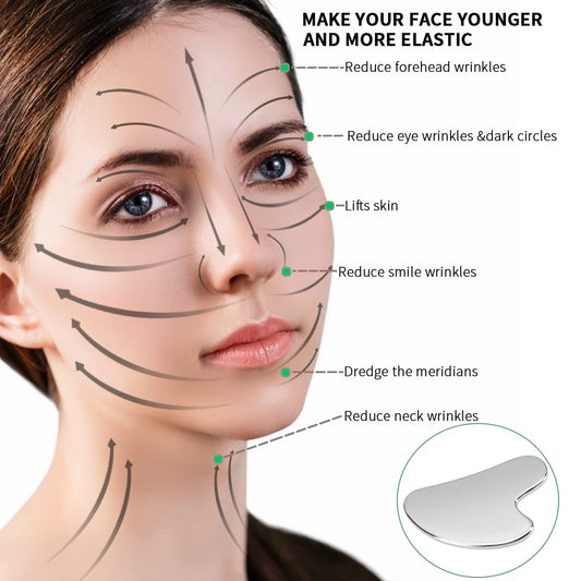 Gua Sha Facial Tools, Stainless Steel Guasha Tool for Face, Gua Sha Massage Tool for SPA Acupuncture Therapy Trigger Point, Lymphatic Drainage Tool